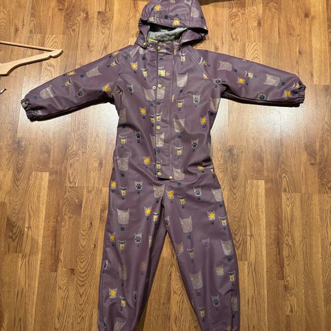 Bergans barne vinterdress i størrelse 104 for jente. Dressen er lilla og laget for å gi beskyttelse mot kalde værforhold. Den har forsterkede områder på knærne.