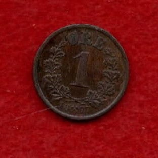 Gammel Antikk Norsk 1 Øre Mynt 1897 - Kvalitet 1+