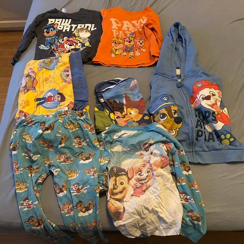 Paw patrol klespakke str 5/6 år. Samlet 150kr.