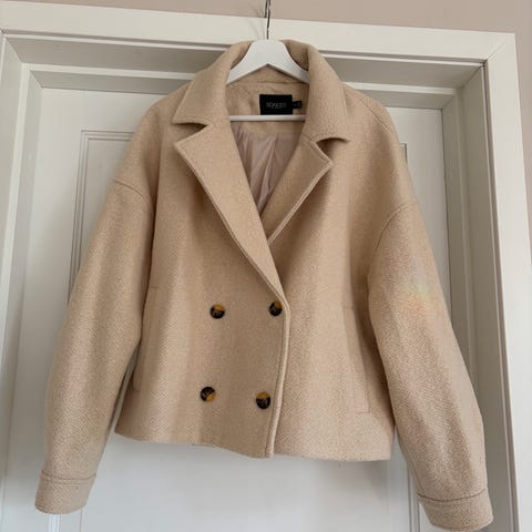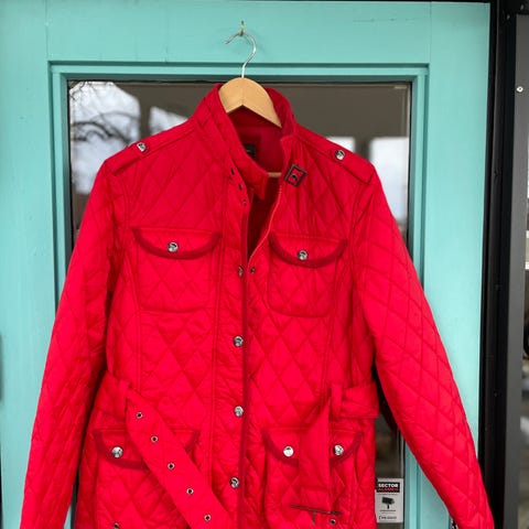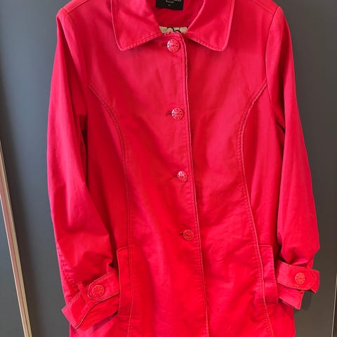 Soaked in Luxury Andre jakker i størrelse XL for kvinner. Jakken er rød og har ribbestrikkede mansjetter og krage. Den har knappelukking og lommer foran med klaff. Litt innsvinget.