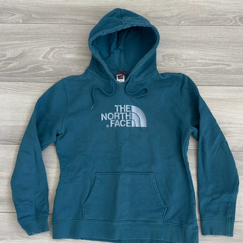 Beskrivelse: Svart The North Face hettegenser i størrelse M. Unik grafisk ryggprint i rødt og svart med teksten "CASTLES MADE OF STONE". Liten logo foran på brystet i rød skrift. Klassisk passform med hette og kengurulomme.