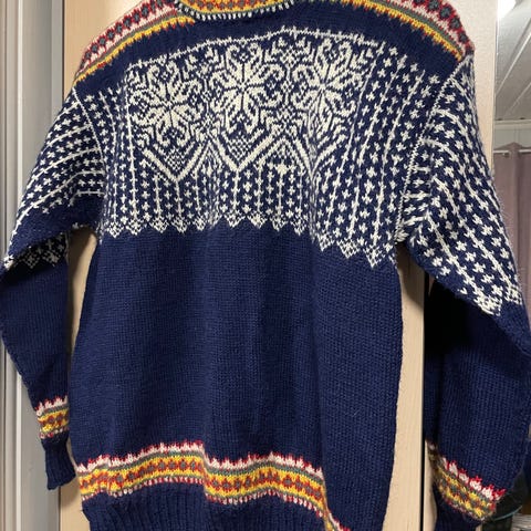 Strikket i Gjesdal naturgarn. Vaskes på ullprogram 30 grader med ullvaskemiddel.
