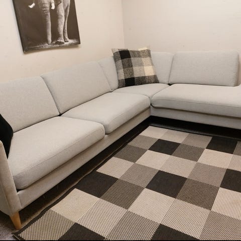 Sofagruppen har vært i bruk i et røyk og husdyrfritt hjem og er renset jevnlig med møbelrenser. Noen bruksmerker må påregnes, men her er det mye bruksverdi igjen.