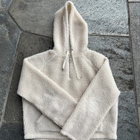 Gina Tricot fleecejakke i beige, størrelse M. Jakken har glidelås og er laget av et mykt, varmt fleece-materiale, designet for kvinner.