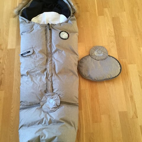 Medfølger forlengerdel av pose, oppbevaringspose, glidelås og orginale lapper fra produsent om produktet.