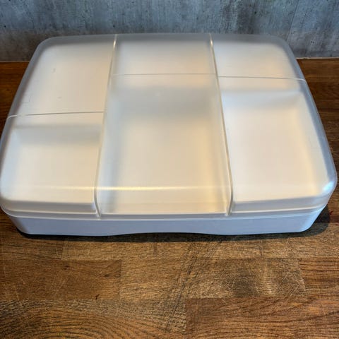 Helt og fint Timeglass, synes den har gjort nytten som pynt og svært lite brukt. Sanden er like hel, så også med det formfullendte glasset