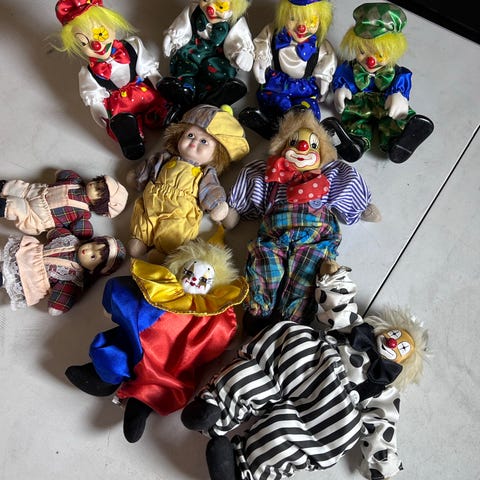 Vintage Klovndukke Flerfarget Stoff og Plast