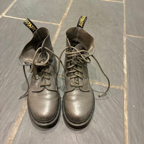 Dr Martens grønne krokodille / croc motiv boots / støvler. Jeg har størrelse 37,5-38 og de er akkurat for små til meg.