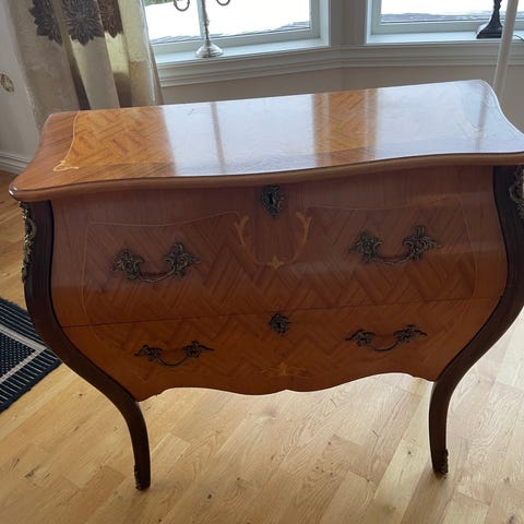 Tre skuffer med messingdetaljer (nøkkel mangler)