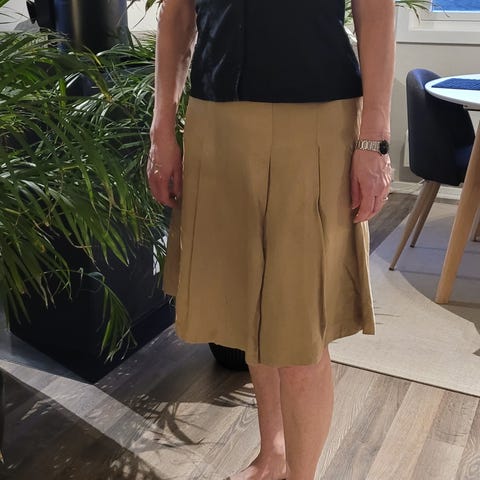Står ikke størrelsen på skjørtet men her er målinger. Vil si selv den passer en M-L.