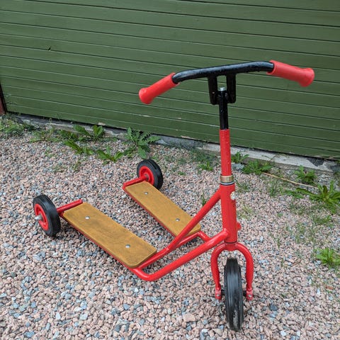 Sammenleggbar elektrisk scooter for de som er dårlige til beins eller på andre måter sliter med å gå større avstander. Køpte den brukt i vår (2025) og fikk opplyst at begge batteriene har blitt oppbevart innomhus. Og den fremstår som pent brukt.