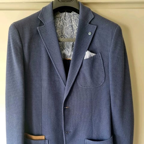 Brukt 2 ganger, men litt for smal. Blazeren er stretch.