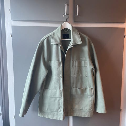 En lysegrønn herre- (eller unisex) dongerijakke er til salgs. Jeg har brukt den et par ganger, men den har hengt i skapet mitt resten av tiden, og den er fortsatt som ny