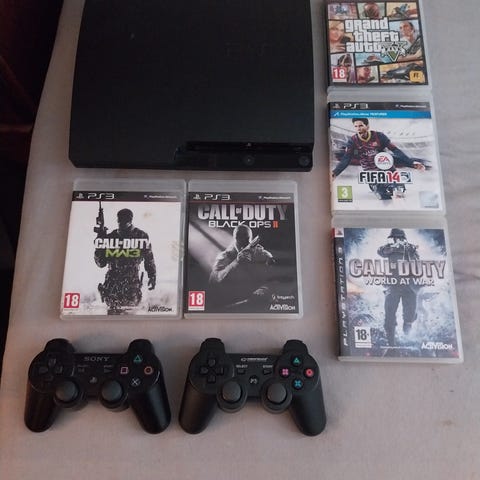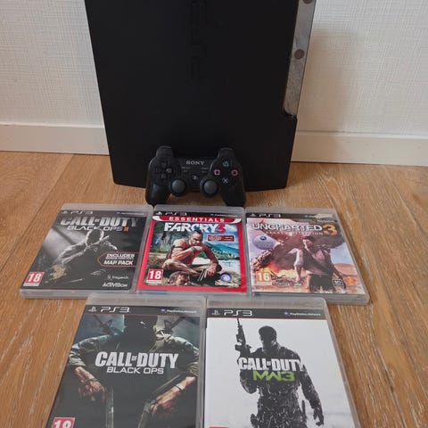 Selger denne PS3 "Slim"-konsollen (CECH-3004A) med 3 spill og 1 original kontroller med nytt batteri for 700,- (+ evt. frakt).