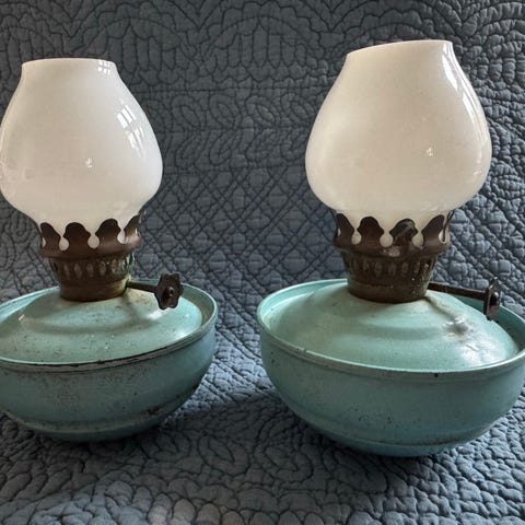 Flott oljelampe til å henge på veggen. Diameter 20cm. Pent brukt.