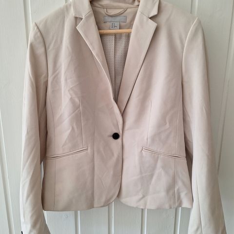 Elegant blazer i lys beige nyanse fra Brandler. Tidløst snitt med tre knapper, lommer foran og helfôret innside. Passer perfekt både til kontor, hverdags og mer pyntede anledninger.