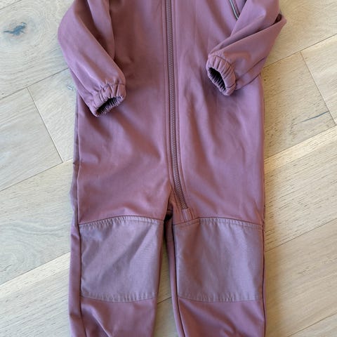 Name it Rosa softshelldress i størrelse 86 for jente. Dressen har forsterkede partier på knær og sete, elastiske fotstropper og hette. Materialet er slitesterkt og egnet for utendørs bruk. Bruksmerker, men ingen hull. Perfekt for banrehagebruk.