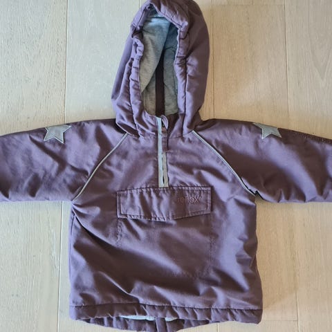 Reflex løkka i størrelse 80. Jakken har en rosa farge og inkluderer hette. Den er laget for å gi komfort og beskyttelse til barn. Glidelås bak på ryggen, noe som gjør jakken enkel å både ta av og på 😊 pent brukt av ett barn.