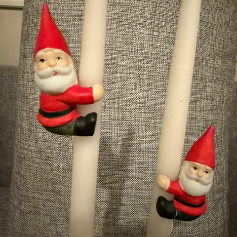 Nisse og Snømann Lysestaker med Røde Stearinlys Jul