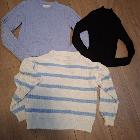 1) Pen beige genser med sorte striper. Fra Cubus. Lite brukt og ingen bruksmerker. 100% bomull. Merket 146/152.