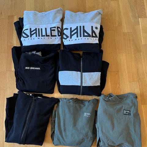 2) Grå og gul genser fra Gap Kids. Denne er litt mer brukt og har noe nupper, men er ellers hel og uten hull. Ingen flekker. Merket 8-9 år. Brukt av vårt barn da han brukte str. 146.