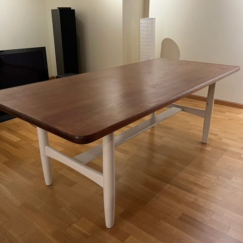 Bordet er nå delvis demontert (bordplaten er løsnet fra understellet).