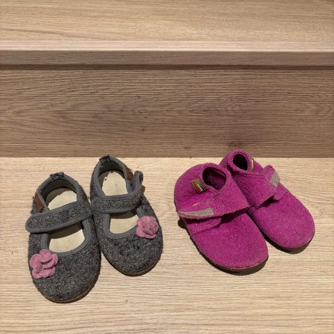 Tøfler i 100% ull fra ullnorge i str 24-25. antiskli knotter under. Ikke sykelig brukt.