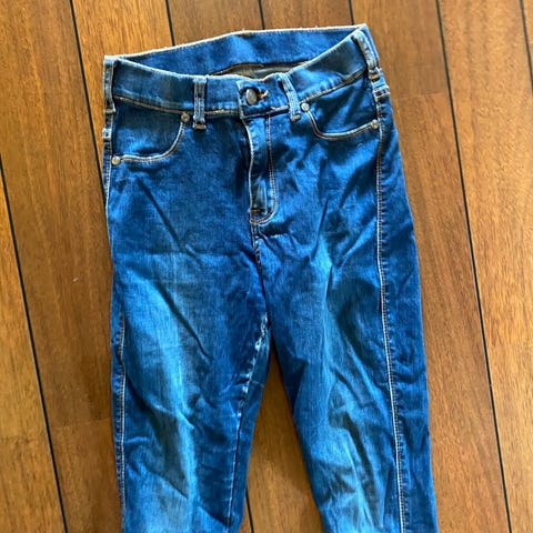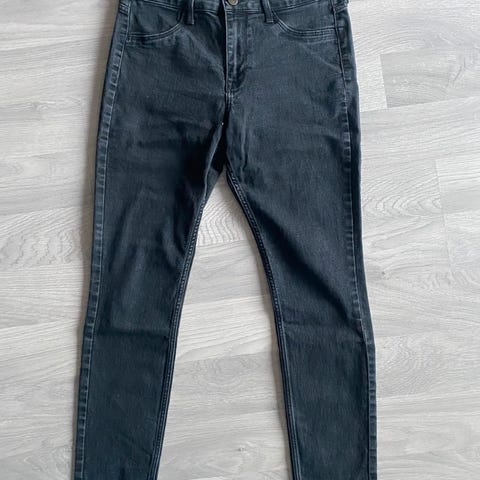 Nesten ubrukt jeggings fra H&M, kun brukt to ganger. Klippet av nederst for å treffe fint på ankelen til meg som er 165 cm, se bildet! Buksen passer ikke meg lenger, men det er fortsatt mye bruk igjen.