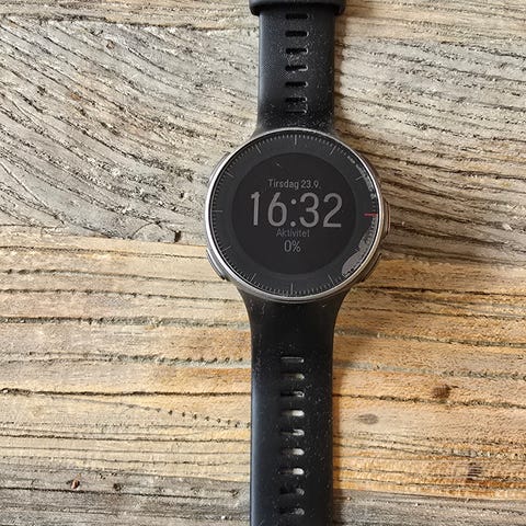 Klokken har en rund skjerm som viser tid, pulsmåling, og treningsdata som tempo, distanse og varighet. Egnet for trening og daglig bruk.