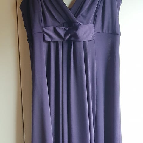 Sort lang selskapskjole med justerbare stropper. Str 36/38.