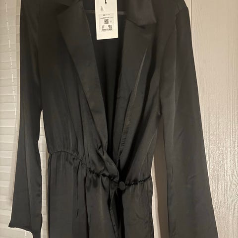 Bik Bok Aluna kjole i offwhite farge, størrelse XS. Kjolen har lange ermer, en omslagslignende front med V-utringning, og elastisk midje. Materialet fremstår som lett og glatt. Passer til kvinner.