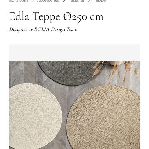 Selger dette teppet fra bolia i fargen creme. Brukt ca et år, men fortsatt grei stand. Noen merker og flekker såklart, selges derfor såpass billig. Tror det blir veldig bra med en rens. Ø200. Nypris 8200, selges for 1400