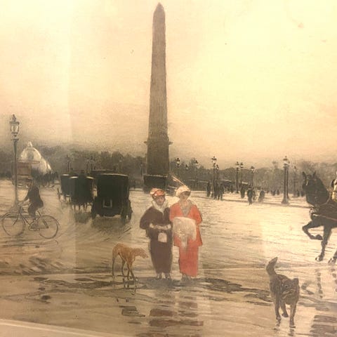 Trykket er i akvatint og er signert maler og grafiker Louis Lacomble (1862 Nederland - 1928 Nederland). Lacomblé laget en rekke artistisk utførte akvatintraderinger, blant annet med motiver fra Oslo.