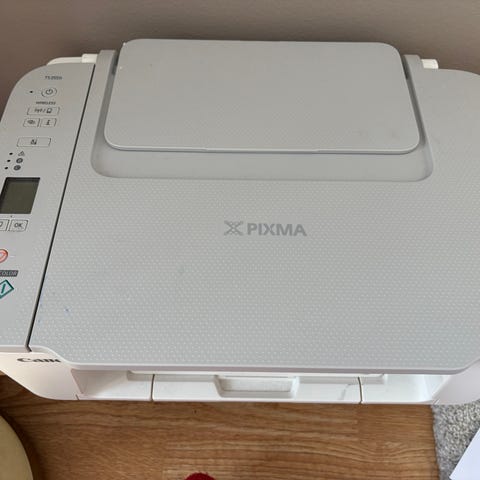Canon TS8350S multifunksjonsskriver i hvit farge. Skriveren har funksjoner for utskrift, skanning og kopiering. Kompakt design som passer for hjemme- og kontorbruk. Tilkoblingsmuligheter inkluderer trådløs tilkobling. Passer for utskrift av dokumenter og bilder i farger.