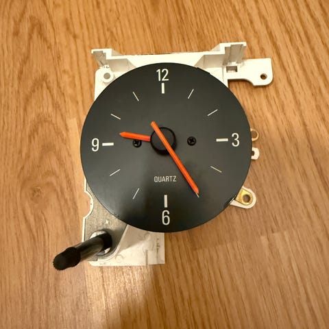 Instrumentpanel med speedometer, klokke, tankmåler og tempmåler til Volvo 240/244/245. Merket er Yazaki. Instrumentet funket som det skulle ved demontering.