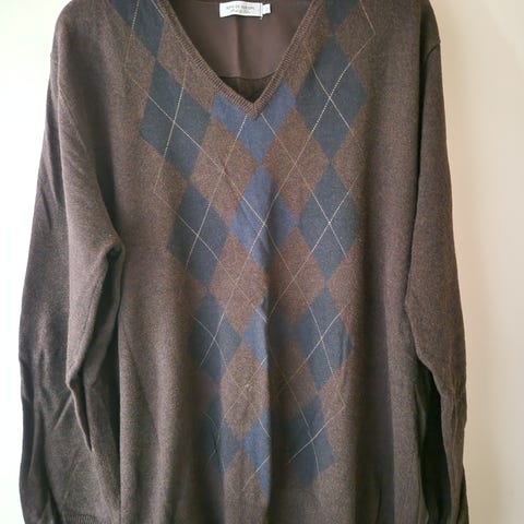 Klassisk strikket herregenser med argyle-mønster (Galvin Green), str. L; veldig fin stand:) ingen flekker eller skader; 50% ull, 50% akryl;