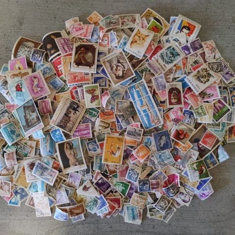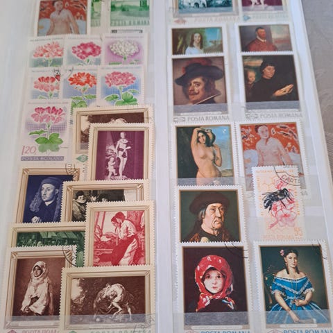 Frimerkesamling med ulike motiver og opprinnelser