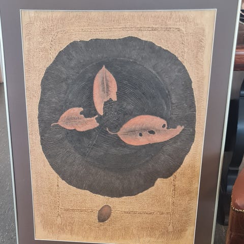 Litografi signert Arne Nøst (1962)trykk med tittel "Move." Nøst er en norsk teatersjef, scenograf, billedkunstner og teater regissør. Utdannet ved Kunstakademiet i Trondheim og Statens Kunstakademi.