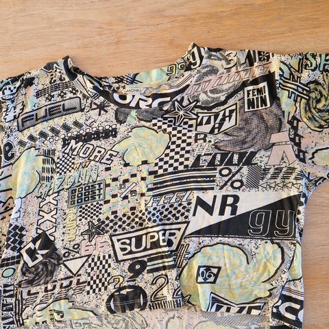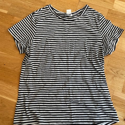 Rosa og sort t-skjorte fra Monki i størrelse XS, flerfarget med stripemønster. T-skjorten er designet for kvinner og har kort erme.