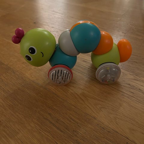 Leketøyet er en formsorterer som hjelper barn med å lære former og farger.