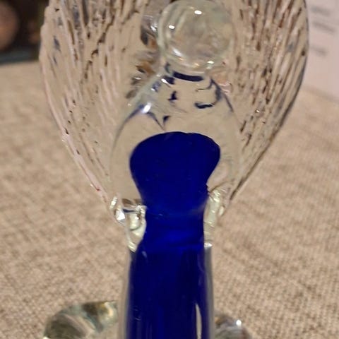 Pen Benny Motzfeldt glassvase i blått og grønt. I god stand. Høyde 17 cm, diameter 6 cm.