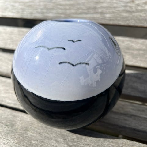 Vasen er merket på undersiden med Villa Collection metall stempel trykket inn i leiren før brenning… spesiell vase som på mange vis har et asiatisk inspirert utseende/chinoiseries, en inspirasjon som har løftet frem mange spennende kolleksjoner over tid og mer spesifikt et karakteristisk formspråk som danske design er berømt for….