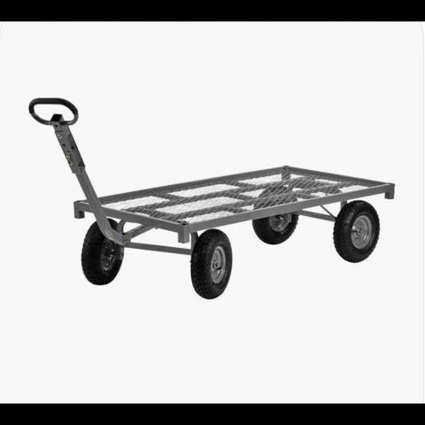 Solid vogn i god stand. 1.5 meter lang. 70 cm.bred. 105 cm høy. 20 cm store hjul. Kan laste ca.800 kg. 2faste og 2 svingbare hjul.