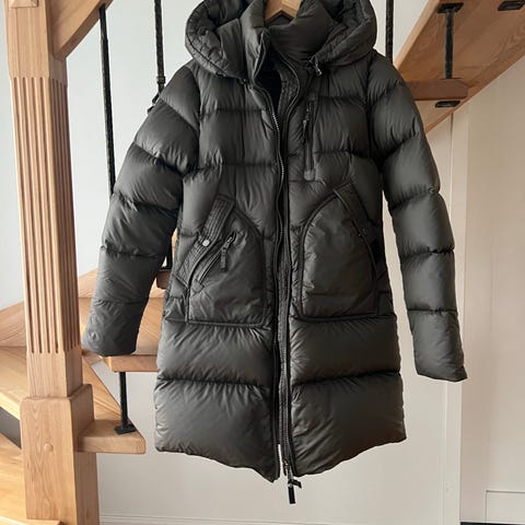 Cedrico Home Puffer Long vinterjakke i svart, størrelse XS for kvinner. Jakken er lang og laget for vinterbruk, med en puffet design som gir ekstra isolasjon og varme.