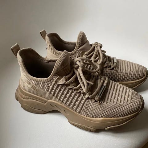 Steve Madden sneakers i størrelse 42, men små i størrelsen. Jeg bruker vanligvis 40,5. Beige farge, laget av pustende materiale. Egnet for fottur og utendørsaktiviteter eller til fritidsbruk. Pent brukt. Selges for 200 kr eller bud.