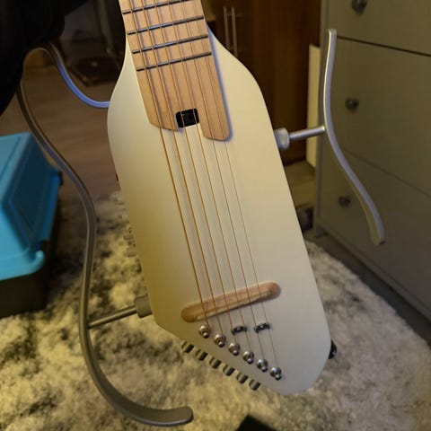 Fantastisk kul gitar med utrolig god lyd. Innebygd skjerm med alt fra tuner, til ulike øvelser, trommeapp, utallige effekter og mye mer. Denne er altfor fin til å kun bli stående og det er derfor med et tungt hjerte at jeg selger den. Ble kjøpt ny for 9800 kr