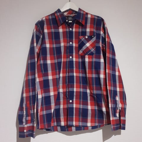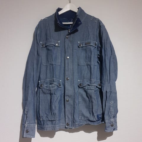 Vannavvisende Vindjakke i kul blåfarge med mønster inni. Pent brukt og helt unik.