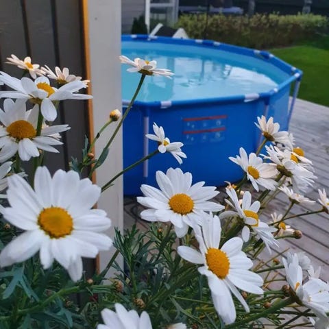 Badekar kan felles ned i terrassen Stampen leveres med utvendig ovn i rustfrittstål, pipe pipehatt i rustfrittstål, og bunnventil med 90 graders vinkel som gir mulighet for tilkobling av avløpslange. Innvendig diameter 1.8m utvendig 2 m