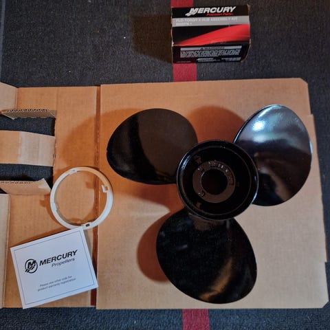 Aluminiumspropell tilsvarende Black Max 13x19 , med utbyttbar hub , HUB kit til Mercury 70-300, Alpha / Bravo opp til 300HK kommer med , til 4 1/4" girhus , også til 40-60 med CT girhus ( Bigfoot 4 1/4" girhus) 15 splines på aksel