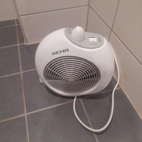 varmevifte i hvit farge med kompakt design. Utstyrt med justerbar termostat og viftefunksjon for effektiv oppvarming. Passer til bruk i mindre rom eller som tilleggsvarme.